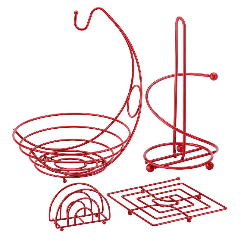 What's Included Banana holder Napkin holder Square trivet Paper towel holder Painted chrome Hand wash Model numbers: Red: Rcks-101R Black: Rcks-101B Size: 4 Piece